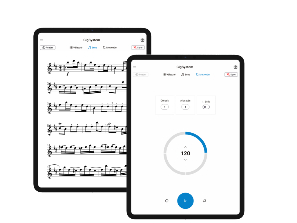 Felejtse el a papír alapú kottákkal való bajlódást, és bízza a GigSystem-re! Rendszerünk a legnépszerűbb formátumokat támogatja, valamint az egyszerű darab szinkronizációt is lehetővé teszi előadási környezetben.